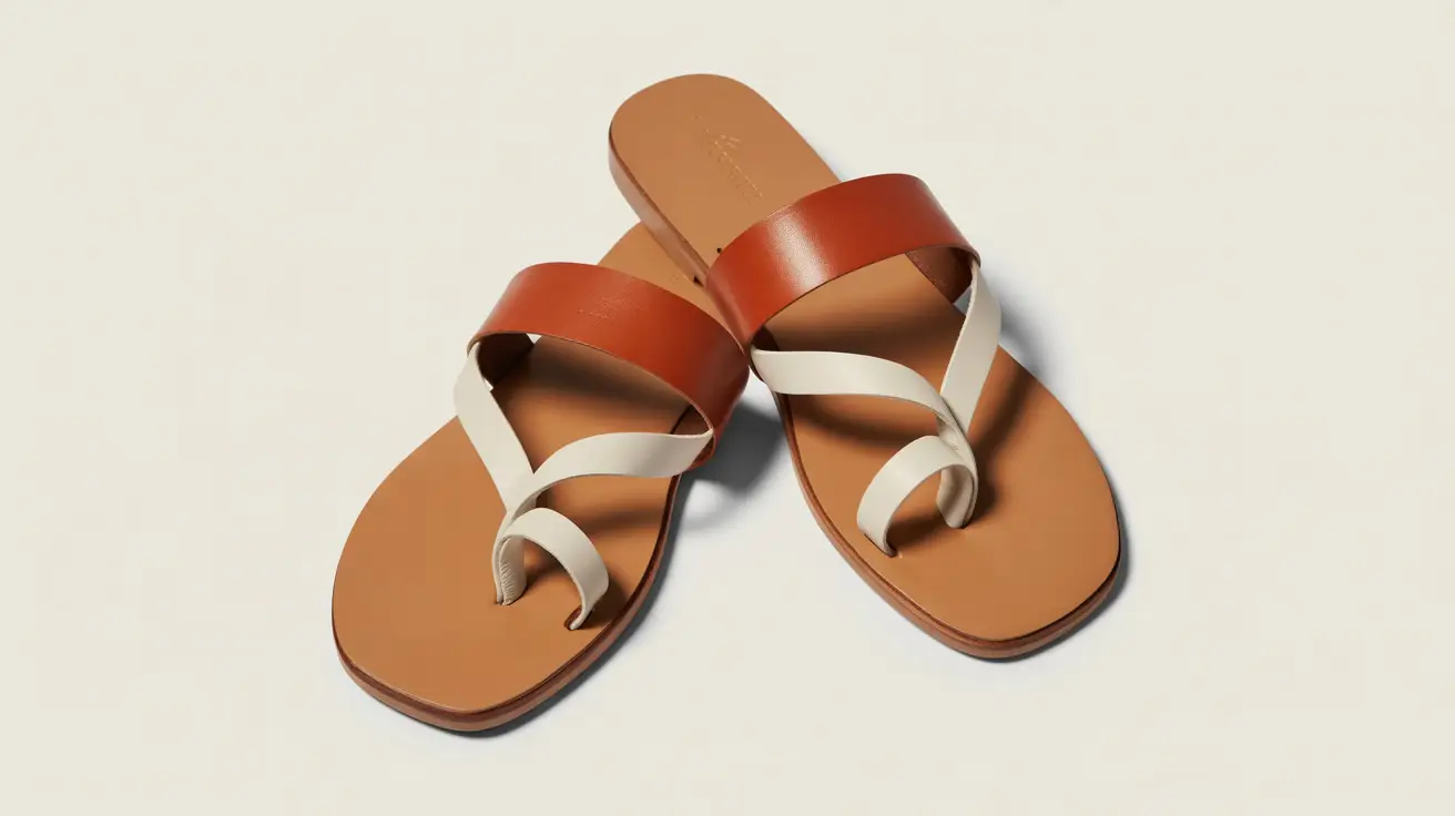 Elevate your summer style with these elegant brown and white leather toe-loop flat sandals. Designed for both comfort and fashion, these versatile slip-on slides are perfect for casual outings or dressing up your warm-weather look. Shop now for trendy and comfortable women’s footwear.