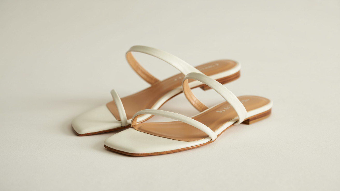 Achieve effortless sophistication with our chic white two-strap minimalist flat sandals. These modern mules are designed for comfort and versatility, making them an essential addition to your contemporary summer footwear collection.