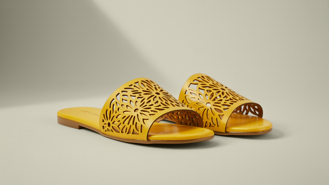 These stylish yellow slide sandals feature detailed floral cutouts that create a bold yet elegant look. The minimalist design, paired with a comfortable flat sole, makes them perfect for adding a bright, playful touch to your summer wardrobe.